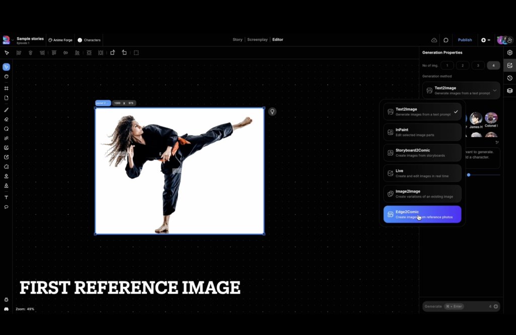 1. I started with a reference image and Framed it. I used the Edge2Comic generation method so that my AI generation follows the edges of the reference image closely. This works great when your reference image is a photo.
