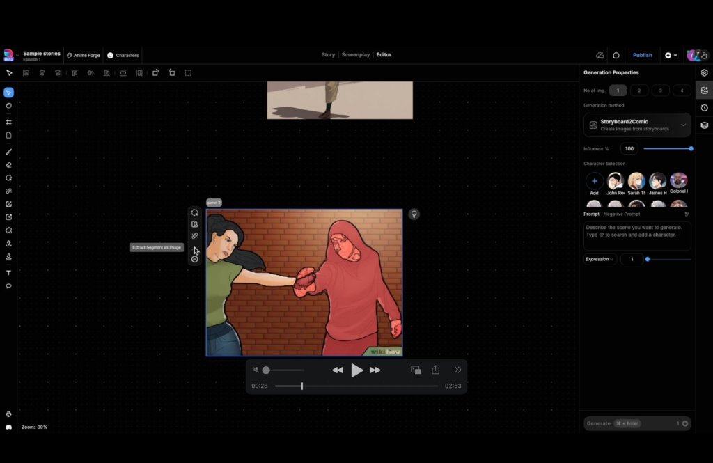 3. Next, I used another reference image for the second character in the action scene. Here I extracted subject from the image using Dashtoon Studio’s segmentation tool.