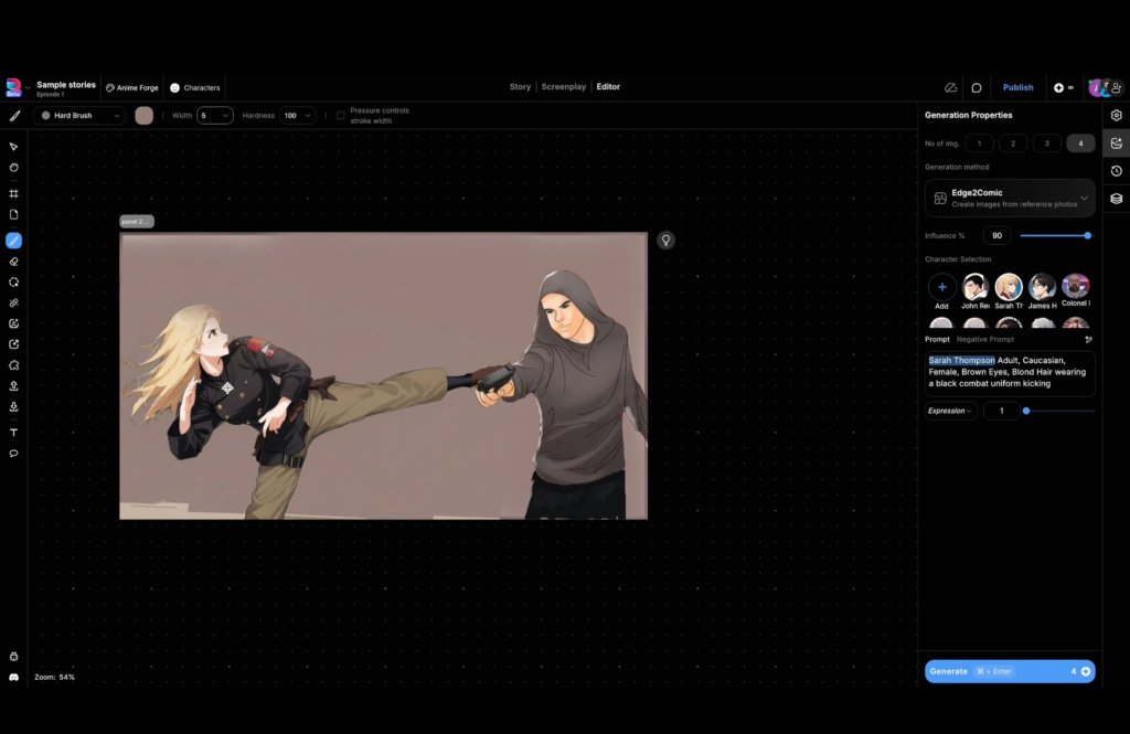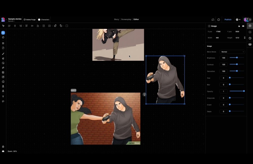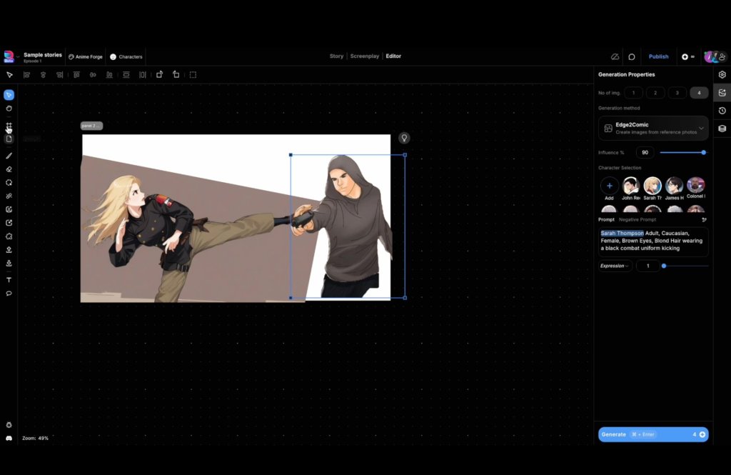 What’s a comic without an awesome action scene? Action scenes with consistent comic characters are impossible to generate with AI if you just prompt the endlessly. Here’s how I compose the perfect action scene Dasthoon Studio’s AI comic creation tools.