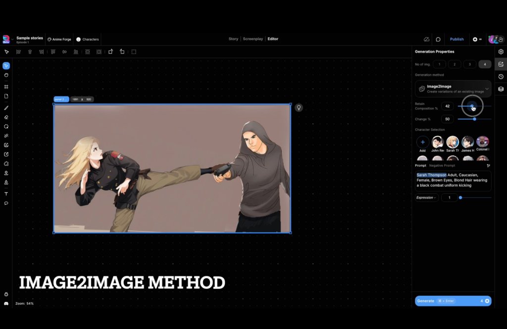 6. Then I used the Image2Image to modify this base image. When I enabled the Retain Composition setting in Image2Image mode, the underlying composition of the characters and their poses remains the same, but the details are changed.